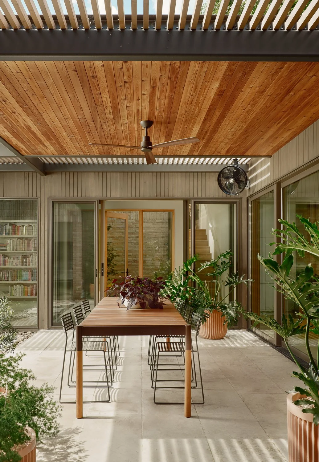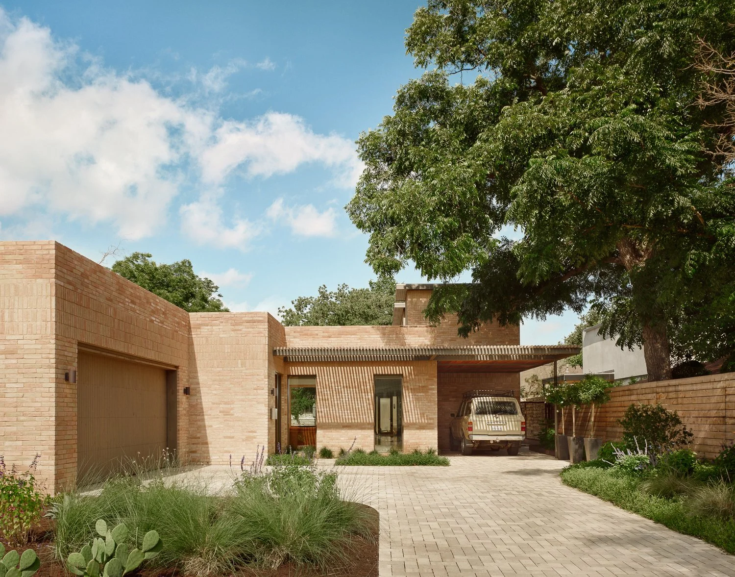 In this East Austin jewel, the house frames a beautiful courtyard. In lieu of a traditional front yard is a lawn, with a native plant palette featuring a low maintenance planting.